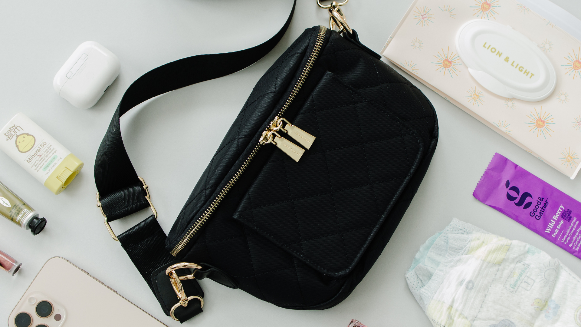 Crafted from durable, water-resistant quilted nylon and accented with gold hardware, the Jetsetter Petite brings style and function together in perfect harmony. Thoughtful features like a front wipes pocket, interior card slots, and a removable key leash ensure you’re always prepared without compromising on style.